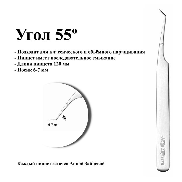 Пинцеты для наращивания ресниц от Анны Зайцевой | Модель A1, угол 55 градусов