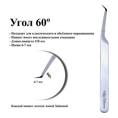 Пинцеты для наращивания ресниц от Анны Зайцевой | Модель A24, угол 60 градусов