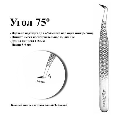 Пинцеты для наращивания ресниц от Анны Зайцевой | Модель ART4, угол 75 градусов