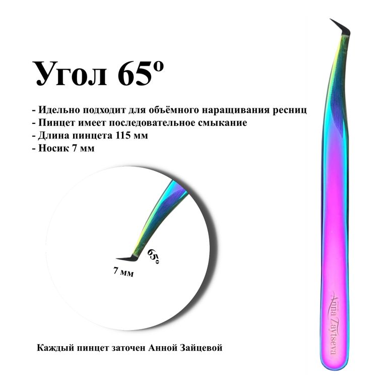Пинцеты для наращивания ресниц от Анны Зайцевой | Модель ЦТ15, угол 65 градусов